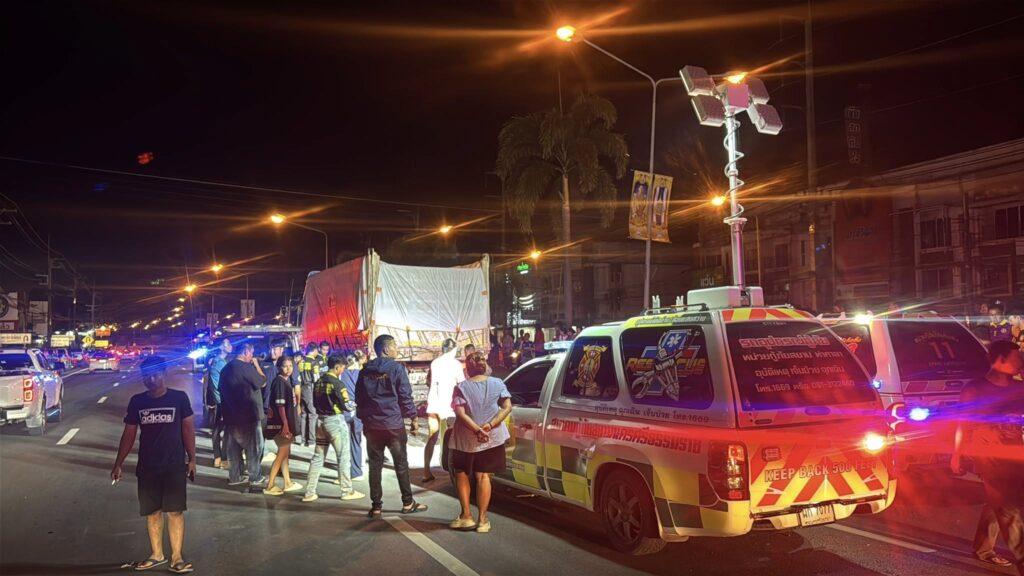 พ.ต.ท.นรากร เอียดช่วย รอง ผกก.ป.สภ.ท่าศาลา ได้รับแจ้งเมื่อช่วงค่ำวันที่ 16 ต.ค.2568 ที่ผ่านมา เกิดเหตุรถบรรทุกชนรถ จยย.ที่แยกไฟแดงหน้า รพ.ท่าศาลา จ.นครศรีธรรมราช มีผู้เสียชีวิตและบาดเจ็บ จึงรายงานให้ผู้บังคับบัญชาทราบ จากนั้นจีงพร้อมด้วยแพทย์ รพ.ท่าศาลา และเจ้าหน้าที่มูลนิธิสยามรวมใจปู่อินทร์ท่าศาลาเข้าไปตรวจสอบ