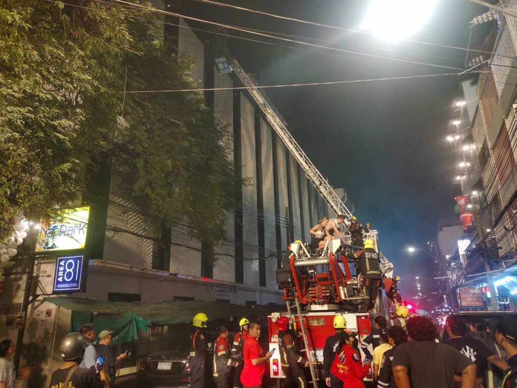 ที่เกิดเหตุเป็นอาคารสูง 6 ชั้น โดยพบกลุ่มควันเกิดขึ้นบนชั้นที่ 5 ของตัวอาคาร เจ้าหน้าที่ดับเพลิงจากสำนักป้องกันและบรรเทาวาธารณะภัยกรุงเทพมหานคร ได้นำรถกระเช้า จำนวน 3 คัน เข้ามาช่วยเหลือเพื่อนำนักท่องเที่ยวที่ติดค้างอยู่ภายในอาคารออกมาจากในตัวอาคาร และมีนักท่องเที่ยวบางส่วนได้ขึ้นไปรอการช่วยเหลืออยู่บนดาดฟ้าของตัวโรงแรม ซึ่งเจ้าหน้าที่กำลังเร่งให้การช่วยเหลืออย่างเร่งด่วน