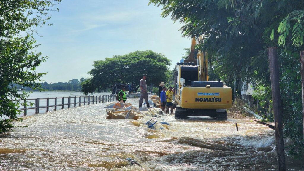 และชาวบ้านได้ร่วมกันนำกำลังและอุปกรณ์เข้าดำเนินการอย่างเร่งด่วน โดยเฉพาะการ นำกระสอบทรายและ Big Bag จำนวนมากเข้าอุดบริเวณที่คันกั้นน้ำพังทลายลง เพื่อชะลอและกั้นน้ำไม่ให้ไหลเข้าท่วมพื้นที่เพิ่มเติม