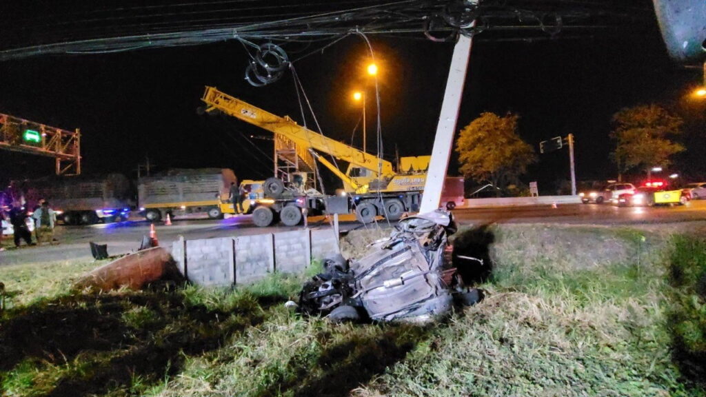 เพชรบุรี-เกิดเหตุสลด เก๋งชนเสาไฟฟ้า บริเวณริม ถ.เพชรเกษม คนขับดับสลด สภาพรถพังยับขาด 2 ท่อน กู้ภัยใช้เวลาเคลื่อนย้ายร่างคนขับกว่า 3 ชม. ทำรถติดสะสมยาวหลายกิโลเมตร