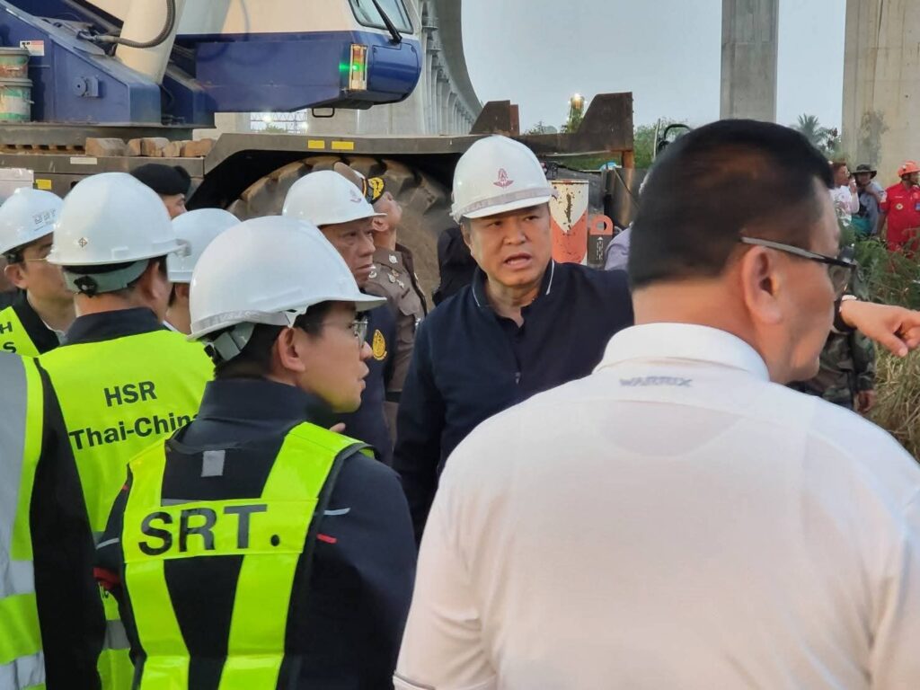 นายกฯ อนุทิน ลงพื้นที่ตรวจจุดเกิดเหตุเครนมรณะ หล่นใส่ขบวนรถไฟ ส่งผลมีผู้เสียชีวิต – บาดเจ็บจำนวนมาก รับปากญาติผู้สูญหาย เร่งค้นหาให้เร็วที่สุด จี้ คปภ. – รฟท. – บริษัทผู้รับจ้าง เยียวยาต้องหลักล้าน หลักหมื่นหลักแสนใครเป็นญาติก็คงไม่ยอม ขณะที่ “ผู้บริหารบริษัทดูแลการก่อสร้าง” ยอมรับความผิดพลาด พร้อมขอโทษทุกฝ่าย ยืนยันบริษัทเยียวยาเต็มที่