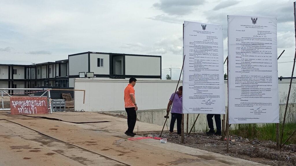โดยพบว่าทางเจ้าหน้าที่ฯนำป้ายประกาศเป็นป้ายไวนิลลงวันที่ 2 ต.ค.68 ขนาดใหญ่จำนวน 3 แผ่นป้ายมาติดที่หน้าสถานที่ก่อสร้างอาคารโดยข้อความระบุว่า … ด้วยปรากฏว่าท่านได้ดำเนินการก่อสร้างอาคาร สำหรับที่พักอาศัย สำนักงาน ถนนคอนกรีต วางท่อระบายน้ำ และตอกเสาเข็มคอนกรีตขนาดใหญ่โดยไม่ได้รับอนุญาตจากเจ้าพนักงานท้องถิ่น