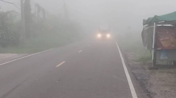 อุทัยธานี-สภาพอากาศแปรปรวน เช้านี้หมอกลงจัด!!หลังฝนตกหนัก ทำอากาศหนาวเย็น ทำให้ถนนสัญจรไปมาค่อนข้างลำบาก เนื่องจากเป็นพื้นที่ติดชายเขาและป่า