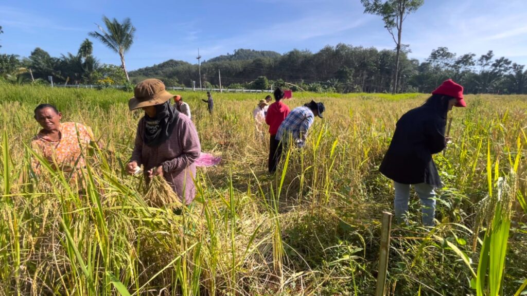 อย่างไรก็ตาม การทำนาในปีนี้ก็ประสบปัญหาจากสภาพอากาศหลายอย่าง เช่น ฝนทิ้งช่วงในระยะต้นข้าวเริ่มโต ทำให้ต้นข้าวเกิดโรคใบไหม้ ต่อมาช่วงต้นข้าวเริ่มออกดอก เกิดฝนตกชุก ทำให้ข้าวไม่ติดเมล็ด และเมื่อข้าวสุก ก็ปรากฏฝนตกชุกอีกรอบ ทำให้ข้าวสุกงอม ต้นข้าวล้ม และขาดแคลนรถเกี่ยวข้าว ทำให้ผลผลิตข้าวเสียหาย ถือเป็นปัญหาใหญ่ของชาวบ้านในพื้นที่ เพราะต้องอาศัยรถเกี่ยวข้าวจากจังหวัดอื่น ทำให้แปลงข้าวไร่ที่เหลือก็ต้องระดมเพื่อนบ้าน และญาติพี่น้อง มาช่วยกันลงแขกเก็บเกี่ยวด้วย “แกะ” ซึ่งเป็นวิธีเกี่ยวข้าวแบบโบราณ ตามภูมิปัญญาชาวบ้านภาคใต้