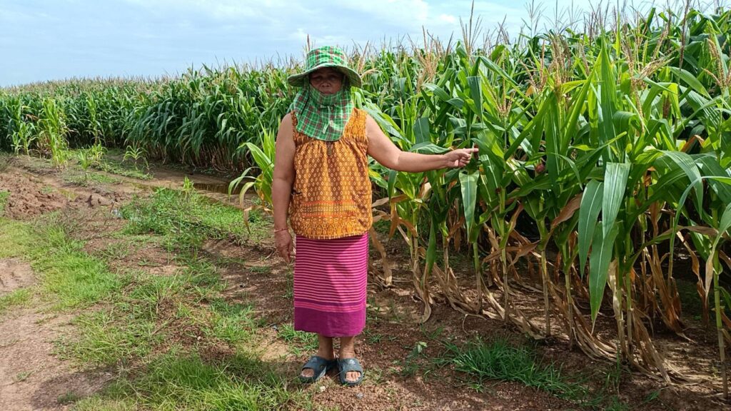 แม้จะตัดสินใจแก้ไขบรรทุกน้ำมาใส่รดแปลงข้าวโพดเพื่อยื้อเวลาก่อนข้าวโพดจะยืนตายยกแปลง  เนื่องจากเกิดฝนทิ้งช่วงนานกว่า 2 อาทิตย์ ทำให้ข้าวโพดที่กำลังออกฝักแก่จัด แต่ความชุ่มชื้นไม่เพียงพอไม่สามารถทำให้ข้าวโพดฟื้นออกฝักตามปกติได้ ซึ่งเกษตรกรแต่ละรายปลูกข้าวโพดรายละ 50 ถึง 100 กว่าไร่ ต้องทำใจปล่อยให้ข้าวโพดยืนต้นแห้งตาย