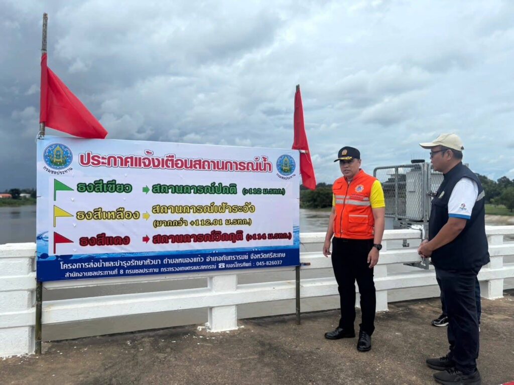 สถานการณ์น้ำในจังหวัดศรีสะเกษยังน่าเป็นห่วงอย่างยิางหลังจากเกิดฝนตกหนักต่อเนื่องในช่วงวันที่ 17–23 กันยายนที่ผ่านมา ส่งผลให้มีปริมาณน้ำหลากจำนวนมากไหลลงแม่น้ำชี และแม่น้ำมูล จนระดับน้ำในเขื่อนหัวนาสูงเกินความจุถึงกว่า 152% ล่าสุดวันนี้ 28 กันยายน 2568 นายอนุพงศ์ สุขสมนิตย์ ผู้ว่าราชการจังหวัดศรีสะเกษ ลงพื้นที่ตรวจสอบสถานการณ์ด้วยตนเอง พร้อมปักธงแดงแจ้งเตือนประชาชนริมตลิ่งให้รีบขนย้ายสิ่งของขึ้นที่สูง เตรียมพร้อมอพยพทุกเมื่อ