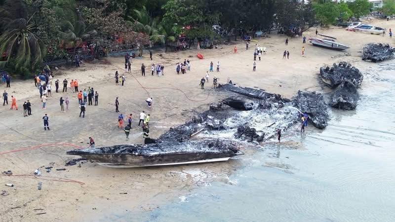 จากเหตุการณ์เพลิงไหม้สปีดโบ๊ทที่จอดอยู่ตามแนวชายหาดบริเวณท่าเทียบเรืออ่าวฉลอง ต.ฉลอง อ.เมืองภูเก็ตเมื่อเกือบรุ่งเช้าวันที่ 7 ม.ค.69 ทำให้เพลิงเผาเรือไป 23-24 ลำ โดยเป็นของผู้ประกอบการทั่วไป 20 ลำ และเป็นของบริษัทชื่อดังด้านการท่องเที่ยวทางทะเลอีกจำนวน 4 ลำ ค่าเสียหายไม่ต่ำกว่า 38 ล้านบาท ซึ่งอยู่ระหว่างการตรวจสอบและสอบสวนของ สภ.ฉลอง เพื่อหาสาเหตุของการเกิดเพลิงไหม้ครั้งนี้