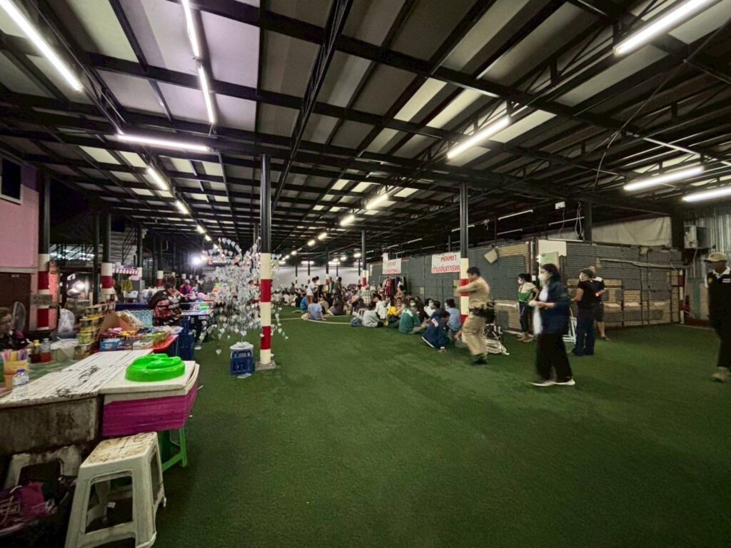 ที่เกิดเหตุอยู่ในพื้นที่สนามฟุตซอลเก่า “เกียรติ ดอนเมือง” เจ้าหน้าที่ชุดกองร้อยปฏิบัติการพิเศษที่ 1 กรมการปกครอง ทำการปิดล้อมทางเข้าออกโดยรอบ พบมีประตูเหล็กขนาดใหญ่ปิดกั้นอยู่ จึงใช้อุปกรณ์ตัดเหล็กเข้าตัดประตูเป็นช่องเพื่อให้เจ้าหน้าที่บุกเข้าไปด้านใน จากการตรวจสอบพบว่าใช้พื้นที่ของสนามฟุตบอลหญ้าเทียม และพื้นที่อาคารที่อยู่ใกล้เคียง เป็นห้องพนันแบบครบวงจร รวม 5 ห้อง และห้อง VIP 1 ห้อง โดยมีการเล่พนันกำถั่ว, ไฮโล และ เสือมังกร โดยสามารถจับกุมนักพนันได้รวม 176 คน แบ่งเป็นชาย 62 คน หญิง 114 คน พร้อมยึดของกลางเงินสด ประมาณ 1 ล้านกว่าบาท ทั้งธนบัตรและเหรียญ สมุดบัญชีธนาคาร รวม 17 เล่ม เป็นของหญิงรายหนึ่งชื่อเดียวกันทั้งหมด มีเงินโอนบัญชีตั้งแต่หลักแสนไปจนถึงหลักสิบล้าน และพบสลิปเงินฝากในวันเดียวรวมแล้ว เกือบ 4 ล้านบาท รวมถึงอุปกรณ์โต๊ะเล่นพนัน และอุปกรณ์การเล่นจำนวนมาก นอกจากนี้ภายในยังมีการตั้งร้านอาหาร และน้ำดื่มเหมือนเป็นตลาดนัดย่อม ๆ บริการให้กับผู้เล่นพนันดังกล่าว