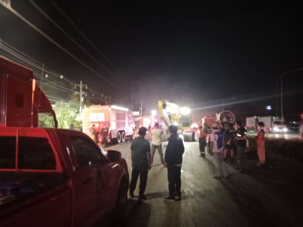 ชุดเฝ้าระวังเหตุการณ์ฯ ประกอบด้วยเจ้าหน้าที่พร้อมรถดับเพลิง จำนวน 4 คัน เฝ้าระวังตลอด 24 ชั่วโมง เหตุการณ์ดังกล่าวไม่มีผู้บาดเจ็บหรือเสียชีวิต    พบบ้านพักคนงานภายในโรงงานถูกเพลิงไหม้เสียหายเกือบทั้งหมด มูลค่าความเสียหายคาดหลายร้อยล้านบาท ส่วนสาเหตุเบื้องต้นคาดว่าเกิดจากไฟฟ้าลัดวงจร ขณะนี้เจ้าหน้าที่พิสูจน์หลักฐานอยู่ระหว่างตรวจสอบอย่างละเอียดอีกครั้ง