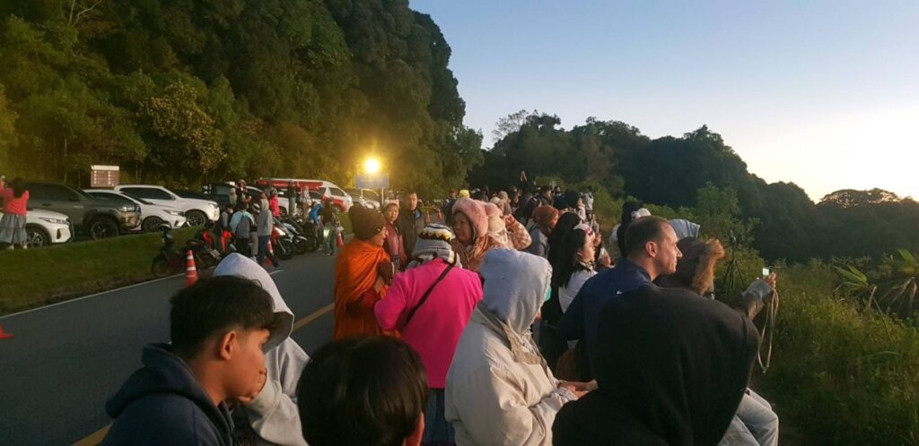 นักท่องเที่ยวเนืองแน่น แม้จะเป็นช่วงเช้าตรู่ แต่นักท่องเที่ยวทั้งชาวไทยและชาวต่างชาติก็ไม่ย่อท้อ ต่างสวมเสื้อกันหนาว หมวก และถุงมือ เพื่อรอชมพระอาทิตย์ขึ้นและสัมผัสความหนาวเย็น