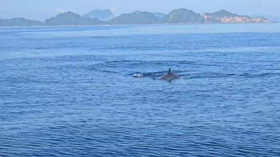 ทั้งนี้ ไม่ว่าเรือของนักท่องเที่ยวกลุ่มนี้จะเดินทางไปทางไหน ฝูงโลมาก็จะสลับกันว่ายน้ำเข้ามาใกล้ๆ ท่ามกลางบรรยากาศในท้องทะเลตรังที่สดใสอย่างยิ่ง จนมองเห็นทั้งน้ำทะเลและท้องฟ้าเป็นสีฟ้าใส โดยบางช่วงฝูงโลมาจะว่ายน้ำขึ้นนำหน้าเรือ และบางช่วยจะว่ายน้ำตามเรือ ทำให้นักท่องเที่ยวกลุ่มนี้รู้สึกตื่นเต้นเป็นอย่างมาก เพราะไม่เคยพบเจอฝูงโลมาเป็นๆ แบบใกล้ชิดเช่นนี้มาก่อน ต่างรีบบันทึกภาพและคลิปไว้เป็นที่ระลึกกันใหญ่