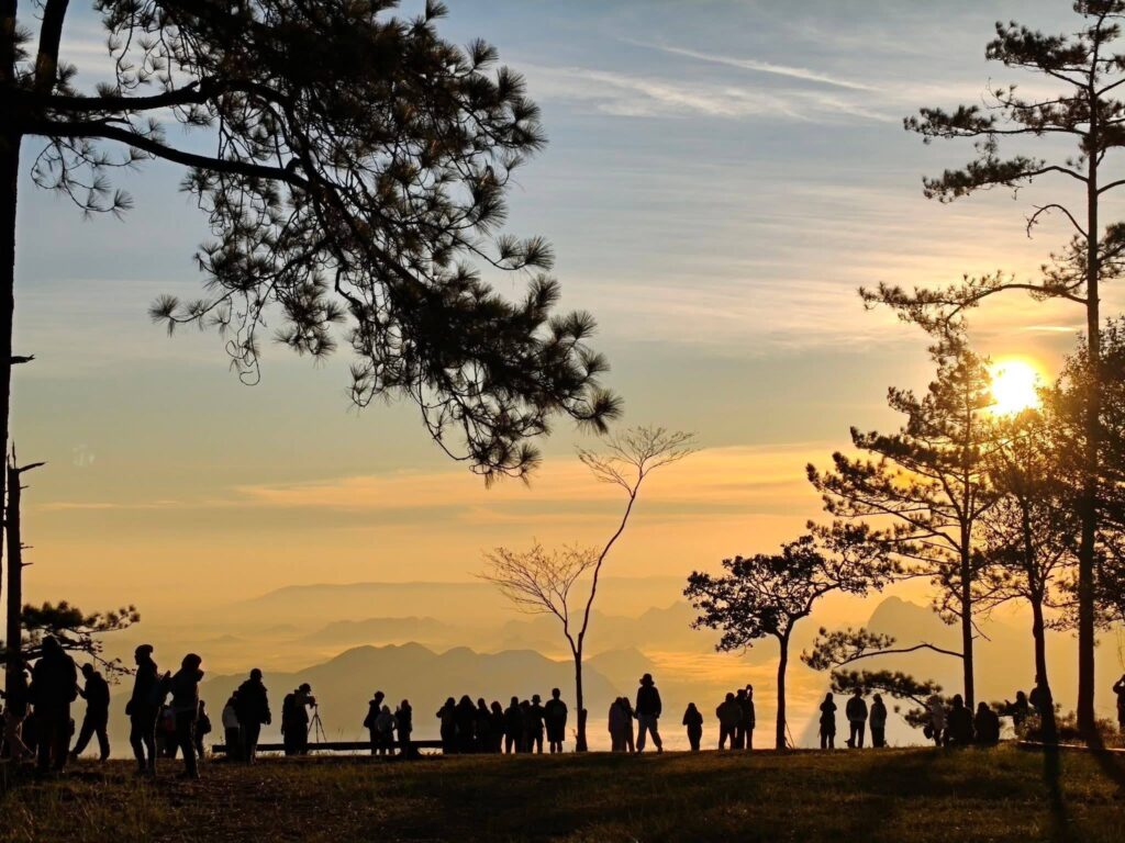 บรรยากาศยามเช้าบนภูกระดึงในขณะนี้เต็มไปด้วยอากาศหนาวสดชื่น พร้อมทะเลหมอกที่ปกคลุมไปทั่วทิวเขา ขณะที่แสงแดดยามเช้าส่องประกายผ่านม่านหมอก สร้างภาพที่สวยงามราวกับภาพวาด นักท่องเที่ยวจำนวนมากต่างพากันตื่นแต่เช้าเพื่อชมทิวทัศน์อันงดงามและสัมผัสลมหนาวที่พัดโชยมาเย็นสบาย