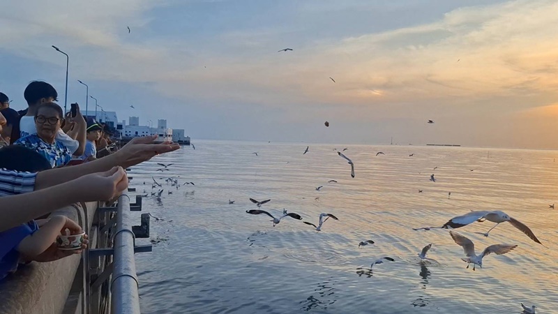 บรรยากาศในช่วงเย็นวันหยุดสุดสัปดาห์ มีนักท่องเที่ยว ทุกเพศ ทุกวัยเดินทางมาชมและให้อาหารนกนางนวลที่อพยพบินหนีหนาวมาจากแถบมองโกเลีย ทิเบต ไซบีเรีย และจีน มาหากินอยู่บริเวณชายทะเลบางปู โดยพบมากที่สุดอยู่ที่ สถานตากอากาศบางปู จังหวัดสมุทรปราการ นกนางนวลจะบินหนีหนาวมาอย่างนี้ทุกปี ในช่วงตั้งแต่เดือนพ.ย.ถึง เม.ย.
