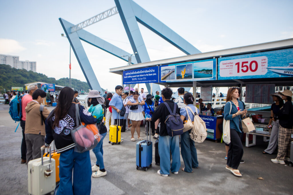 บรรยากาศที่ท่าเทียบเรือแหลมบาลีฮาย เมืองพัทยา อำเภอบางละมุง จังหวัดชลบุรี เป็นไปอย่างคึกคัก นักท่องเที่ยวทั้งชาวไทยและชาวต่างชาติหลั่งไหลเดินทางมายังเกาะล้าน ซึ่งเป็นแหล่งท่องเที่ยวทางธรรมชาติชื่อดังของเมืองพัทยา เพื่อพักผ่อนและเล่นน้ำทะเล ในช่วงวันหยุดยาวระหว่างวันที่ 11-13 ตุลาคม 2568