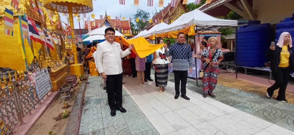 ณะนักธุรกิจในพื้นที่ อ.แม่สอด จ.ตาก,นายเชาวลิต ปัญญานาค นายกองค์การบริหารส่วนตำบลเกาะตะเภา พร้อมผู้บริหารองค์กรปกครองส่วนท้องถิ่น (อปท.)ในพื้นที่ -ผู้นำท้องถิ่นกำนัน ผู้ใหญ่บ้าน –สมาชิกสภาท้องถิ่น นักท่องเที่ยว พี่น้องประชาชน พุทธศาสนิกชน เดินทางมาร่วมงานประเพณีขึ้นธาตุเดือน 9 (เหนือ) ประจำปี 2568 ที่ อุทยานประวัติศาสตร์หนองเล่ม ต.เกาะตะเภา อ.บ้านตาก จ.ตาก จำนวนหลายพันคน