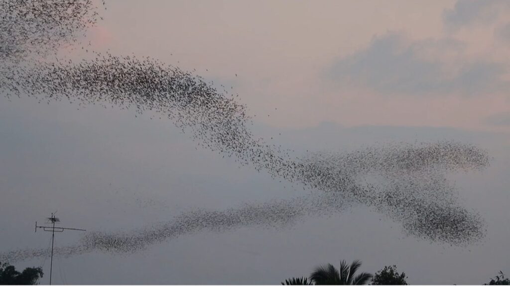 สิ่งที่เป็น UNSEEN แห่งบ้านมุงนั่นคือ พานักท่องเที่ยวไปตื่นตาตื่นใจกับการออกหาอาหารของฝูงค้างคาวหลายล้านตัว ที่บินออกจากถ้ำ สามารถมองเห็นเป็นทิว ทอดยาวบนท้องฟ้ายาวหลายกิโล ตั้งแต่ช่วงเวลาประมาณ 17.30 น. ไปจนถึงประมาณ 18.00 น. หรือ ประมาณ 40-45 นาที นักท่องเที่ยวสามารถมองเห็นได้วด้วยตาเปล่า จะเห็นแนวเส้นของฝูงค้างค้าวที่บิน เป็นแนวโค้งคล้ายคลื่น โดยฝูงค้างคาวเหล่านี้จะอาศัยช่วงเวลายามเย็นของทุกๆวัน บินออกจากถ้ำ เพื่อไปหาอาหารก่อนจะกลับเข้ามาที่ถ้ำอีกครั้งในช่วงเช้ามืด เป็น Unseen ที่นักท่องเที่ยว ที่มาเที่ยวบ้านมุงแห่งนี้ต้องไม่พลาดที่จะมาชมด้วยตา