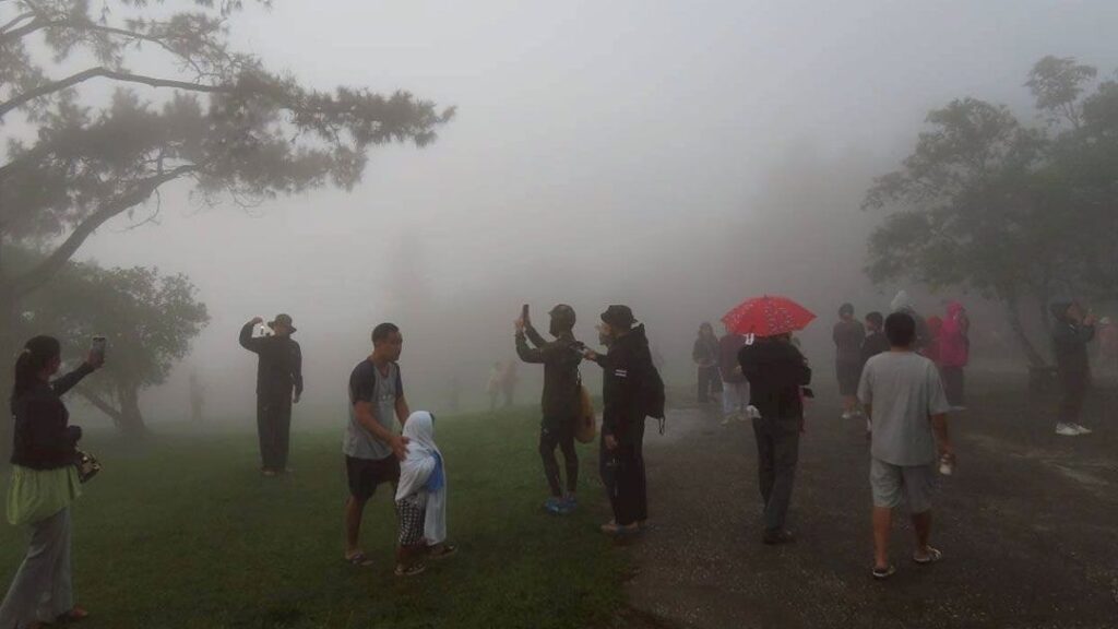 ท่ามกลางทิวเขาสลับซับซ้อน สายหมอกค่อยๆ เคลื่อนผ่านยอดภูเรืออย่างอ่อนโยน นักท่องเที่ยวต่างเพลิดเพลินกับการชมหมอกแบบรอบทิศ 360 องศา โต้ลมหนาว พร้อมเก็บภาพความประทับใจอย่างตื่นเต้นและสนุกสนาน