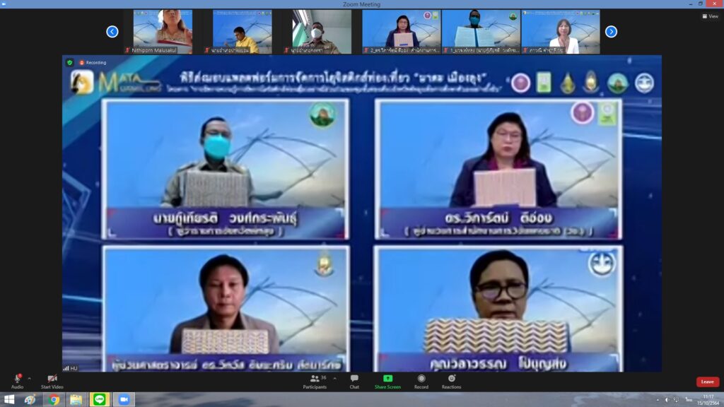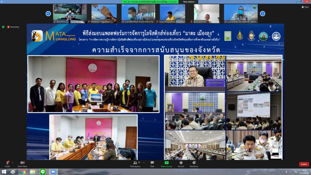 ส่งมอบแพลตฟอร์มการจัดการโลจิสติกส์ท่องเที่ยว “มาตะ เมืองลุง” ผลงานจากการจัดการความรู้การจัดการโลจิสติกส์ท่องเที่ยวอย่างมีส่วนร่วมของชุมชนท่องเที่ยวจังหวัดพัทลุงเพื่อการพึ่งพาตนเองอย่างยั่งยืน แก่นายกู้เกียรติ วงศ์กระพันธุ์ ผู้ว่าราชการจังหวัดพัทลุง ผ่านสื่ออิเล็กทรอนิกส์ ZOOM Cloud Meetings