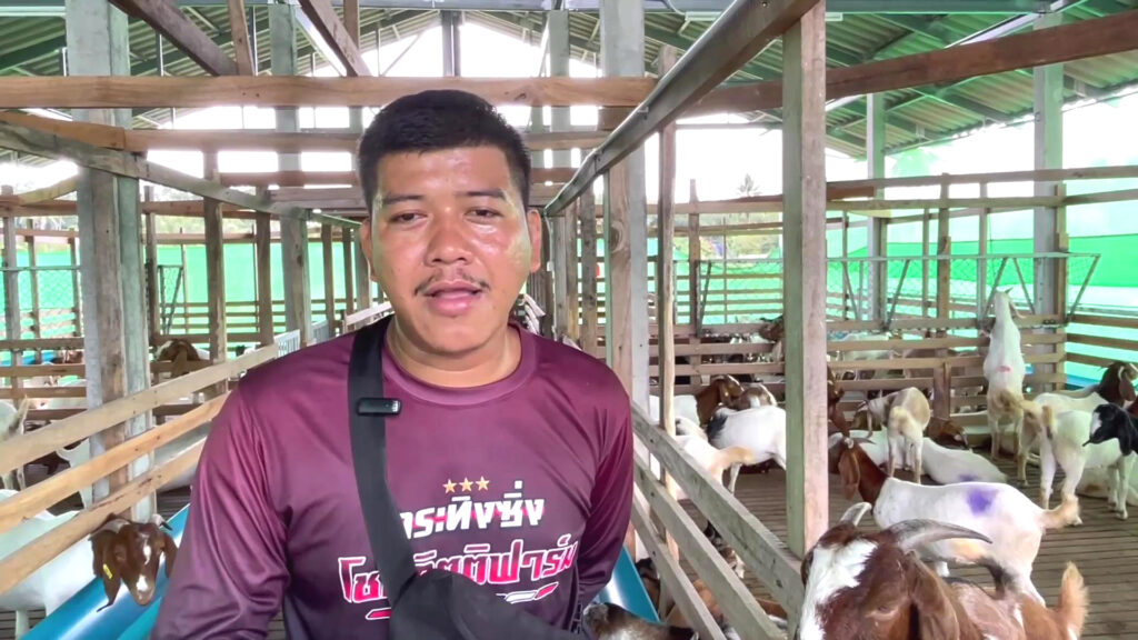 นัฐวุฒิ บอกว่า ตนได้ทำฟาร์มเลี้ยงแพะมาตั้งแต่ปี 2561 ที่จังหวัดนนทบุรี ก่อนแต่งงานแล้วย้ายมาอยู่ที่จังหวัดตรัง เมื่อ 2 ปีที่แล้ว แต่ยังคงทำฟาร์มเลี้ยงแพะเรื่อยมา จนล่าสุดมีถึง 300 กว่าตัวแล้ว ใน 5 สายพันธุ์ โดยเฉพาะสายพันธุ์บอร์ ที่นำเข้าพ่อแม่พันธุ์มาจากแอฟริกาใต้ ตัวผู้ราคาเริ่มต้นที่ตัวละ 15,000 บาท ตัวเมีย ราคาเริ่มต้นที่ตัวละ 20,000 บาท นอกจากนั้น ยังมีสายพันธุ์แองโกล สายพันธุ์ลูกผสม สายพันธุ์นูเบียน และสายพันธุ์แคระ (แพะสวยงาม) ซึ่งวันนี้มีตลาดที่ดีมาก และมีแนวโน้มดีขึ้นเรื่อยๆ สำหรับลูกค้าจะอยู่ในอำเภอต่างๆ ของจังหวัดตรัง เช่น กันตัง ย่านตาขาว ปะเหลียน รวมทั้งจากจังหวัดพัทลุง ที่มีแพะเท่าไหร่ก็เอาหมด โดยมีการสั่งจองตกลงราคาซื้อขายกันล่วงหน้า