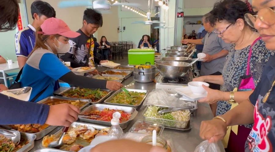 ด้วยราคาเพียง 60 บาท ลูกค้าสามารถตักข้าวราดแกงได้ไม่อั้น ไม่จำกัดเวลา มีเมนูให้เลือกหลากหลาย ทั้งต้ม ผัด แกง ทอด น้ำพริก ผักสด รวมถึงก๋วยเตี๋ยวไก่และขนมหวาน สลับหมุนเวียนไม่ซ้ำในแต่ละวัน จนกลายเป็นร้านยอดนิยมในเวลาเพียง 1 เดือน