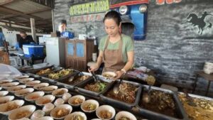 ด้วยราคาเพียง 60 บาท ลูกค้าสามารถตักข้าวราดแกงได้ไม่อั้น ไม่จำกัดเวลา มีเมนูให้เลือกหลากหลาย ทั้งต้ม ผัด แกง ทอด น้ำพริก ผักสด รวมถึงก๋วยเตี๋ยวไก่และขนมหวาน สลับหมุนเวียนไม่ซ้ำในแต่ละวัน จนกลายเป็นร้านยอดนิยมในเวลาเพียง 1 เดือน