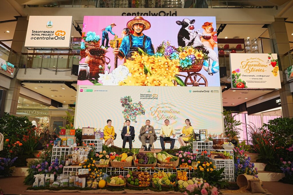 มูลนิธิโครงการหลวง ร่วมกับ มหาวิทยาลัยเกษตรศาสตร์ และ บริษัท เซ็นทรัลพัฒนา จำกัด (มหาชน) ผู้บริหารศูนย์การค้าเซ็นทรัลเวิลด์, บมจ. เมืองไทยประกันชีวิต, บมจ. บางจาก คอร์ปอเรชั่น และ บริษัท ภัณฑ์ดีพลาสติก จำกัด แถลงข่าวการจัดงาน “โครงการหลวง 56” ภายใต้แนวคิด “Farm To City–Farmtime Stories น้ำพระราชหฤทัย จากฟ้าสู่มหานคร” โดยจัดขึ้นเพื่อเฉลิมพระเกียรติพระบาทสมเด็จพระเจ้าอยู่หัวองค์นายกกิตติมศักดิ์มูลนิธิโครงการหลวง และสมเด็จพระนางเจ้าฯพระบรมราชินี น้อมรำลึกในพระมหากรุณาธิคุณของพระบาทสมเด็จพระบรมชนกาธิเบศร มหาภูมิพล อดุลยเดชมหาราช บรมนาถบพิตร ผู้ทรงก่อตั้งมูลนิธิโครงการหลวง นอกจากนี้ ยังร่วมเฉลิมพระเกียรติสมเด็จพระนางเจ้าสิริกิติ์ พระบรมราชินีนาถ พระบรมราชชนนีพันปีหลวง เนื่องในวันเฉลิมพระชนมพรรษา วันที่ 12 สิงหาคม 2568