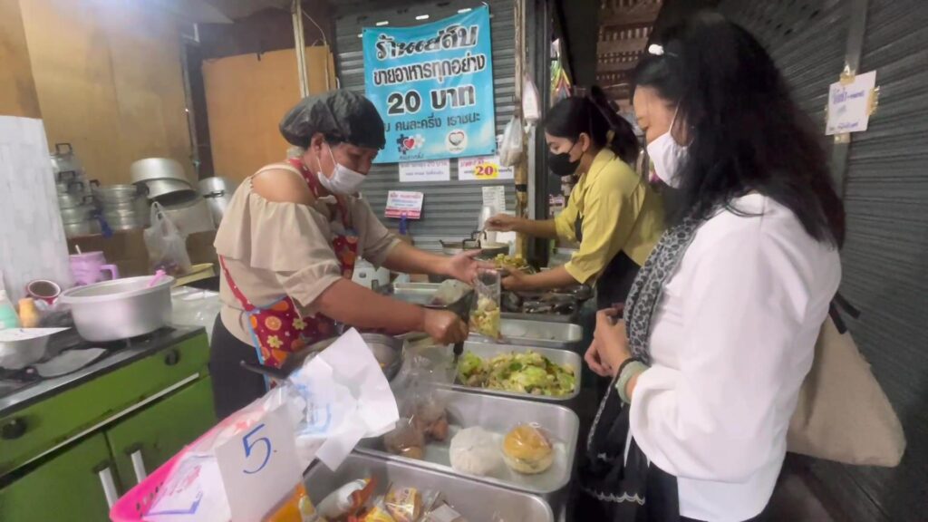 “เจ๊อร” นางอรอุมา ศรีเทพ บอกว่า สาเหตุที่ตนเองขายข้าวแกง และเมนูอื่นๆ ได้ราคาถูกขนาดนี้ เพราะทำสองคนกับลูกสาว และไม่มีภาระลูกจ้าง แถมค่าเช่าในตลาดก็ยังถูก ได้กำไรนิดๆ หน่อยๆ วันละ 400 -500 บาท ก็อยู่ได้แล้ว ไม่เดือดร้อนอะไร วัตถุดิบในตลาดก็ราคาไม่แพง ส่วนของพืชผักที่ใช้ทำอาหาร บางชนิดก็เลือกใช้พืชผักตามฤดูกาล
