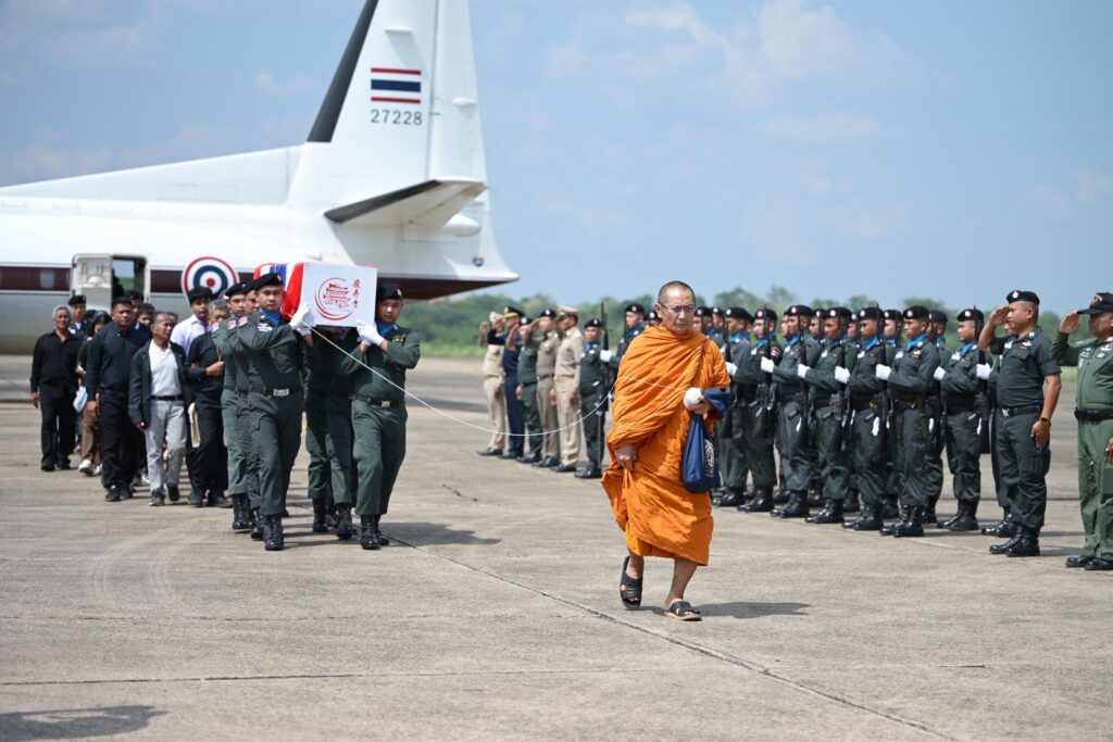 และนำร่างเคลื่อนย้ายด้วยขบวนรถไปยัง วัดสว่างอารมณ์ ต.ศรีบุญเรือง ต.ศรีบุญเรือง จ.หนองบัวลำภู ซึ่งศพผู้กล้าได้มีการคลุมธงชาติ โดยมีกำลังพลกก.ตชด.24 ร่วมกันแบกหีบศพผู้กล้าเดินผ่านกองเกียรติยศที่ยืนให้ความเคารพ โดยมีนายราชันย์ ซุ้นหั้ว ผู้ว่าราชการ จ.อุดรธานี หัวหน้าส่วนราชการ ข้าราชการตำรวจ กก.ตชด.24 ผู้แทนหน่วยงาน พร้อมญาติและครอบครัวของผู้วายชนม์ ร่วมตั้งแถวรับร่างกลับภูมิลำเนาเพื่อประกอบพิธีบำเพ็ญกุศลตามศาสนาอย่างสมเกียรติ