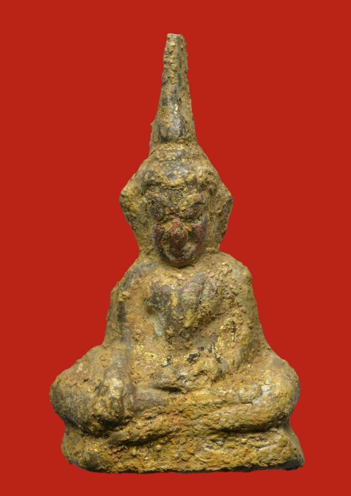 พระท่ากระดานองค์นั้นมีลักษณะทรวดทรงค่อมๆหรืองอเล็กน้อย จึงทำให้พระพักตร์ก้มง้ำมากกว่าธรรมดาซี่งเข้าใจว่าน่าจะเป็นมาแต่ในกรุ เนื้อตะกั่วเถื่อน สนิมแดงสึกหรอบางส่วน แต่พระพักตร์ยังสมบูรณ์ชัดเจน