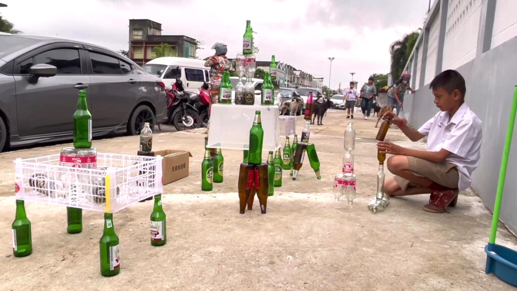 ไลฟ์สไตล์ » ยกย่อง 2 พี่น้องฝาแฝดแสดงโชว์เรียงขวดหารายได้เป็นทุนเล่าเรียนพิเศษ