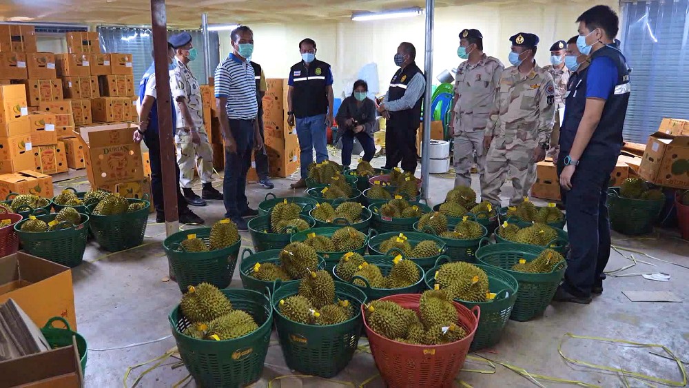 ก่อนหน้านี้ชุดเฉพาะกิจป้องกันและแก้ไขปัญหาทุเรียนด้อยคุณภาพ จ.จันทบุรี นำโดย พล.ต.ต.จรัล จิตเจือจุน รอง ผบช.ภ.3 รรท.ผบก.ภ.จว.จันทบุรี พร้อมด้วย นายวุฒิกร สุขีนัย นอภ.เมือง และ นายชลธี นุ่มหนู ผอ.สวพ.6 (ผู้อำนวยการสำนักวิจัยและพัฒนาการเกษตร เขตที่ 6) นำกำลังบุกเข้าจับกุมผู้ประกอบการล้งรับซื้อผลไม้ “ลุงตู้-อ๊อด” ภายใน ซ.สระบาปบน พื้นที่หมู่ 10 ต.คลองนารายณ์ อ.เมือง จ .จันทบุรี หลังสืบทราบว่ามีพฤติกรรม นำทุเรียนจากประเทศเวียดนาม มาสวมสิทธิเป็นทุเรียนไทยโดยใช้เอกสารรับรองGAPและGMPปลอมเพื่อส่งออกไปจีน